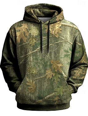 Homme Camouflage Sweat à capuche Sweatshirt Tactique manche longue Col ras du cou Chasse Bleu Vert Cordon de serrage Automne Hiver Designer S M L XL XXL XXXL