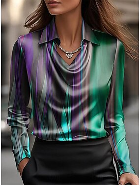 Femmes Chemise Froncé Drapé A Ombre Graphique Élégant Occasionnel manche longue Col Bénitier Hauts Réguliers Quotidien Travail Tenue de soirée Bleu Fuchsia Vert Été Automne