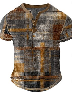 Homme Graphique Géométrique Chemise Henley T-shirt gaufré Manche Courte Quotidien Rétro Vintage Classique Sport en Plein Air Occasionnel Fête Printemps & Été Toutes saisons Marron Sapin Gris Bleu