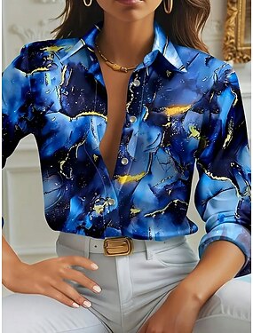Femmes Chemise Chemise de travail Paillettes Géométrique Marbre Élégant Moderne Occasionnel manche longue Col de chemise Hauts Réguliers Quotidien Travail Tenue de soirée Bleu Violet Vert Gris