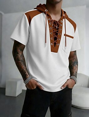 Homme Tee-shirt Gaufre T-shirt Chemise à manches courtes Manche Courte À capuche Été Printemps Bloc de Couleur Streetwear Élégant Occasionnel Bloc de Couleur À capuche Occasionnel Quotidien Extérieur