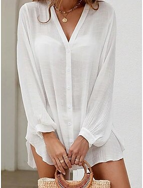 Femmes Mini Robe Robe Blanche Robe de Plage Robe noire Vêtement couvrant Élégant Mode Classique Quotidien Extérieur Plage Coupe Ample Uni manche longue Col en V Noir Blanche Été Printemps