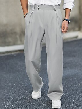 Homme pantalon de costume Pantalon Chino Pantalon plissé Boutons Poche Jambe droite Plein Confort Formel Soirée Travail Mode Style classique Noir Gris foncé Micro-élastique
