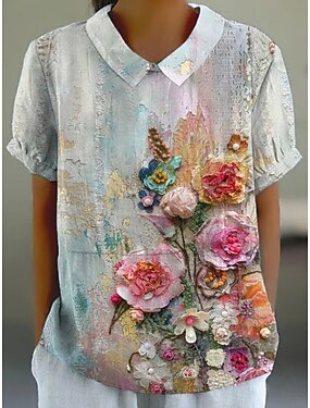 Femmes Chemise Boutons Imprimé Fleuri Quotidien Occasionnel Manche Courte Col de chemise Hauts Réguliers Quotidien Fête Bleu Vert Été Printemps