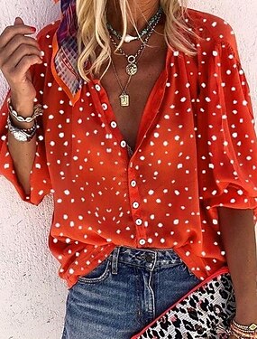 Femmes Chemisier Imprimé Graphique À pois ancien Quotidien Occasionnel Manche 3/4 Col en V Hauts Réguliers Quotidien Fête Tenue de plage Bleu Blanche Jaune Rouge Printemps Automne