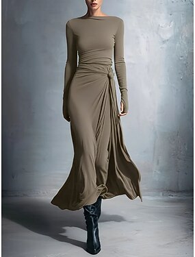 Femmes Robe Midi Robe Décontractée Robe Portefeuille Robe moulante Élégant Mode Moderne Extérieur Vacances Sortir Coupe régulière Uni manche longue Col ras du cou Noir Rouge Violet Kaki Printemps