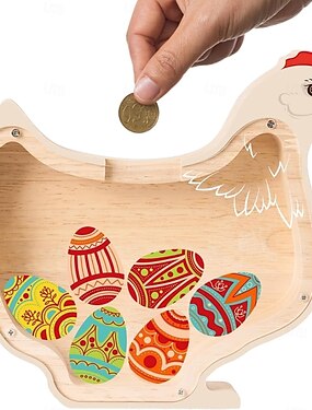 Tirelire lapin en bois pour enfants, incassable, mignonne et pratique, idéale comme cadeau de Noël, d'anniversaire ou de Pâques.