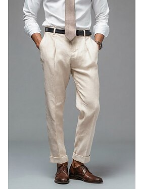 Pour des hommes Coton Lin Dress Pants works Pantalons Affaires Réunion Quotidien Léger Formel Noir Marine foncé Beige Printemps & Été Pantalon Couleur Unie Coupe régulière Long Non Elastique
