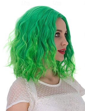 Perruque de carnaval 2026 Vert Ombre Bouclé Ondulé Court Perruque synthétique de festival Mardi Gras Parade Coiffure de costume de cosplay pour Femmes