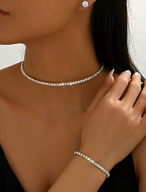 Parure de bijoux 3 Chrome 1 Collier 1 Bracelet Boucles d'oreilles Femmes Mode Parure de Bijoux Pour Tenue de soirée