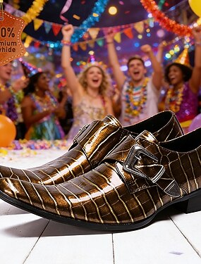 Mocassins métallisées dorés pour hommes de Mardi Gras - Chaussures en cuir de vachette 100 % haut de gamme avec finition dorée brillante parfaites pour le carnaval les fêtes et les occasions spéciales
