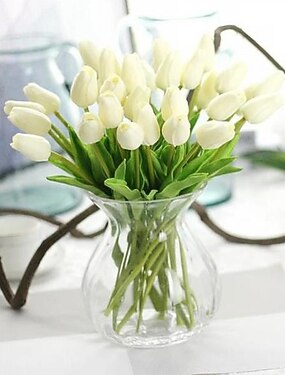 Bouquet de 22 tulipes artificielles réalistes - tulipes roses et blanches à tiges vertes, fleurs en résine/plastique pour la décoration de mariage, maison et bureau - centre de table réaliste et