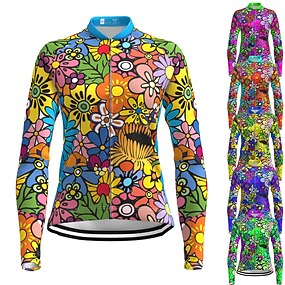 Femmes Maillot de cyclisme Arc-en-ciel Motif Floral LGBT manche longue Cyclisme Maillot Top avec 3 poches arrière VTT Vélo tout terrain Cyclisme sur route Séchage Rapide Bandes réfléchissantes Poche