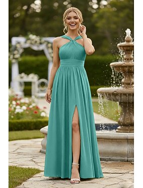 Ligne A Robe de Demoiselle d'Honneur Devant Croisé Sans manches Élégant Longueur au sol Chiffon avec Devant Fendu / Couleur Unie