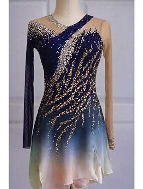 Robe de patinage artistique Femmes Fille Patinage Robe Bleu / Noir Patchwork Maille Haute Élasticité Entraînement Compétition Tenue de Patinage Classique cristal pailleté manche longue Patinage sur