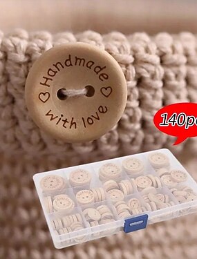 Lot de 140 boutons de couture en bois, ensemble de boutons mixtes multi-tailles avec design à 2 trous, boutons décoratifs et fonctionnels pour vêtements, artisanat et projets de bricolage