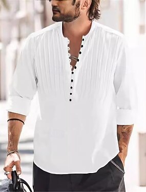 Homme Chemise Chemise popover Chemise Décontractée Chemise de Plage Chemise Boutonnée Noir Blanche bleu marine Bleu Ciel Kaki manche longue Uni Col rond Vacances Occasionnel Plissé Vêtement Tenue