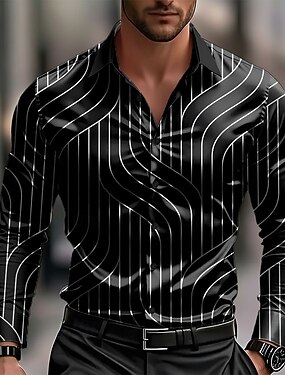 Homme Géométrique Dégradé Ligne Chemise Chemise en satin Chemise habillée manche longue Vêtement décontracté de travaile Vacances Tenue Quotidienne Été Printemps Automne Col Rabattu Impression 3D