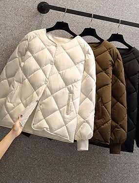 Femmes Veste matelassée Confortable Respirant Avec Poches Boutons Occasionnel Uni Vacances Rue Occasionnel Tenue quotidienne Simple Boutonnage Court Col Rond Coupe régulière manche longue Vêtements