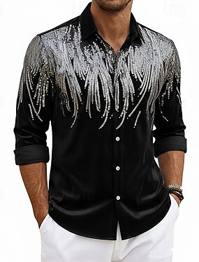 Homme Chemise Chemise d'été Chemise Décontractée Chemise de Plage Chemise Boutonnée Chemise en velours Noir manche longue Couleur Unie Revers Occasionnel Quotidien Paillettes Vêtement Tenue Mode