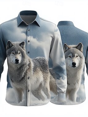 Homme Animal Loup Nature et paysages Chemise Chemise Boutonnée manche longue Vintage Rétro Occasionnel Extérieur Chasse Printemps Automne Col Rabattu Impression 3D chemises à col Bleu Gris