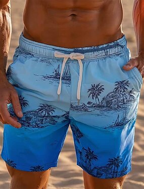 Homme Cocotier Dégradé de Couleur Voilier Maillots de bain Maillots de bain shorts de bain Shorts de Surf Taille Moyenne Hawaïen Vacances à la Plage Poches Latérales doublure en maille Taille