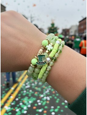 Ensemble de bracelets pour la Saint-Patrick, bracelets empilables à plusieurs rangs de perles vertes, motifs trèfle porte-bonheur, en alliage et faux cristal, bijoux festifs d'inspiration irlandaise.