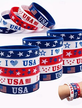 18 bracelets patriotiques en silicone – rouge, blanc &Bracelets multicolores ajustables à motif drapeau américain bleu, parfaits pour le 4 juillet, le Memorial Day ou comme cadeaux d'invités.