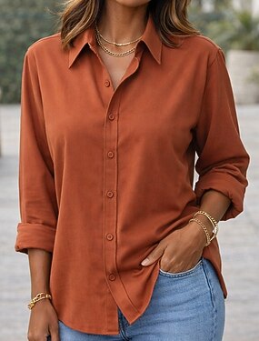 Femmes Chemise Chemise d'été Chemise Boutonnée Chemise en coton Couleur Unie Uni Vacances Mode Occasionnel manche longue Col Rabattu Hauts Réguliers Quotidien Plage Fête Rouge brique Été Printemps