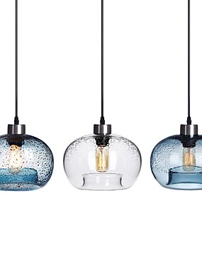 éclairage suspendu verre soufflé lumières d'îlot de cuisine bulle claire nickel brossé 9" diam 110-240v