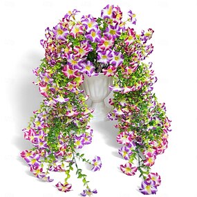 4 bouquets de fleurs artificielles suspendues, plantes grimpantes artificielles d'extérieur résistantes aux UV, décoration de fond pour jardin, porche, fenêtre, terrasse, jardinière suspendue,