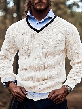 Homme Pull Torsadé Tricoter Hauts Réguliers Col en V Tricoté Uni Col en V Tricots Moderne Contemporain Occasionnel Tenue quotidienne Vêtement Tenue Automne Hiver Noir Blanche M L XL