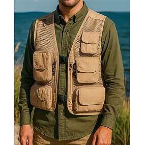Homme Gilet de pêche Veste Randonnée Printemps Automne Extérieur Léger Respirant Veste Chasse Pêche Escalade Noir Vert Véronèse Rouge bleu marine Couleur camouflage