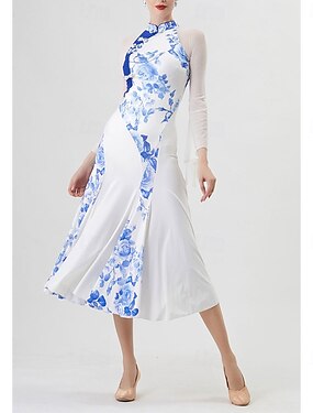 Danse de Salon Robe Plis Gland Épissage Femmes Performance Entraînement manche longue Haut Spandex Chiffon Soie Glacée
