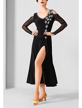 Danse de Salon Robe Strass Épissage Femmes Soirée Entraînement Performance manche longue Haut Spandex Polyester