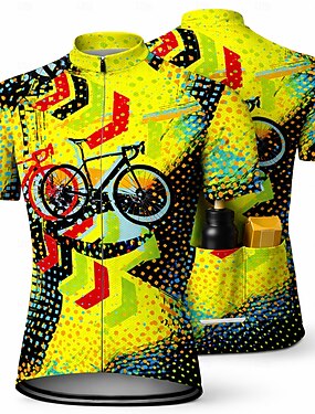 Hommes Maillot de cyclisme Maillot de descente Géométrique Visage Souriant Cyclisme Manche Courte Cyclisme Maillot T-shirt avec 3 poches arrière Résistant aux UV Séchage Rapide Avec Poches Fermeture