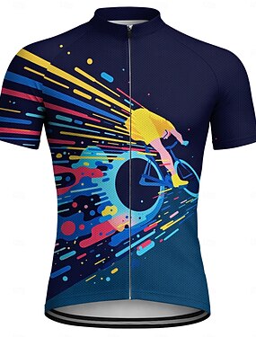 Homme Maillot de cyclisme Dégradé À Motifs 3D Manche Courte Cyclisme Maillot Top avec 3 poches arrière VTT Vélo tout terrain Cyclisme sur route Cyclisme Séchage Rapide Résistant aux UV Bandes