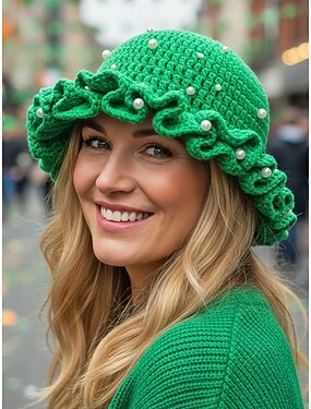 Bonnet tricoté pour femme orné de perles et de trèfles, disponible en plusieurs couleurs, idéal pour la Saint-Patrick, le carnaval et au quotidien.