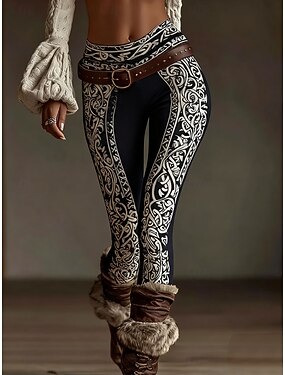 Femmes Leggings Vacances ancien Style Ethnique Longueur cheville Taille haute Graphique Géométrique Doux Confortable Élastique Quotidien Maison Extérieur Noir Bleu Violet Café Printemps Automne Hiver