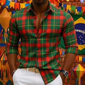 Chemise de carnaval de Rio pour hommes – chemise de festival à carreaux rouges et verts