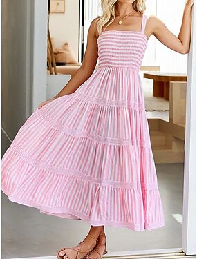 Femmes Robe Midi Robe Décontractée Robe Nuisette Élégant Mode Moderne Extérieur Vacances Sortir Coupe régulière Ligne Sans manches Col carré Bleu Rose Claire Été Printemps
