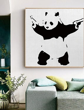 Fait à la main peint à la main peinture à l'huile mur art abstrait noir panda figure décoration de la maison décor toile roulée pas de cadre non étiré