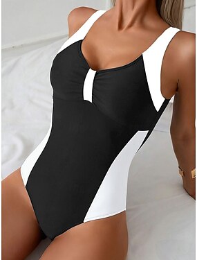Femmes Maillots de Bain Une Pièce Monokini Slips Maillot de bain Contrôle du ventre Taille haute Mince Dos nu Vacances ancien Couleur Unie Graphique Col en U Sans manches Maillots de bain