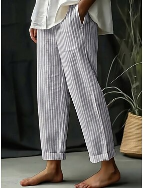 Femmes Pantalon en coton et lin Pantalon d'été Pantalons de Plage Classique Occasionnel Long Taille haute Rayure Avec Poches Impression Conception à cordon élastique Respirabilité Doux Micro-Élastique