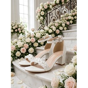 Sandales à talons carrés blanc ivoire pour femmes, ornées de perles - chaussures de mariée élégantes pour les mariages en plein air