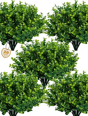 20 bouquets de plantes artificielles vertes d'extérieur résistantes aux UV, arbustes de buis, gazon artificiel pour la décoration intérieure et extérieure de maisons de campagne, jardins, bureaux,