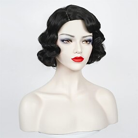 Perruque vagues pour femmes perruque noire vintage des années 1920 perruque bob courte et bouclée costume de carnaval cosplay perruques en cheveux synthétiques Halloween