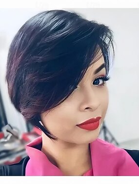 Cheveux Naturel Rémy Perruque Court Ondulé Coupe Lutin Coupe Dégradée Noir Bourgogne Multicolore Meilleure qualité Sans bonnet Cheveux Brésiliens Unisexe Noir naturel #1B Auburn moyen #30 Vin foncé