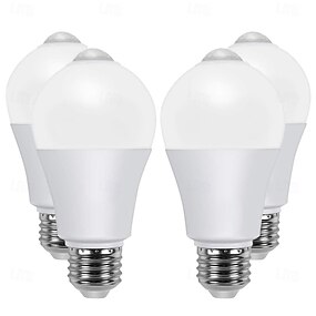 Ampoules à détecteur de mouvement PIR E27 – Lumières de sécurité activées par le mouvement du crépuscule à l'aube pour escaliers, porte d'entrée, porche, garage et sous-sol 4 pièces