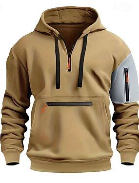 Homme Sweat à capuche Sweat à capuche quart zippé Sweat à capuche tactique militaire Noir Vert Véronèse bleu marine Chameau À capuche Uni Poche Avant Quart de zip Sport & Loisir Occasionnel Quotidien